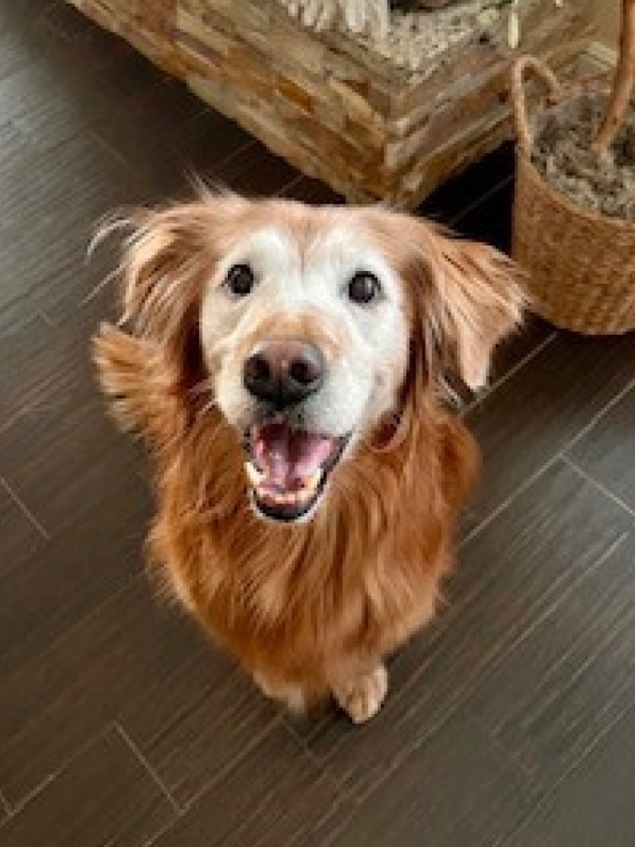 I’m 10 years young and full of love and life! Don’t let my age fool you! I’m an active, goofy guy who enjoys daily walks and playing with my doggy foster siblings. I’m 63 pounds of happy golden energy, so I’d do best in a home with medium to large dogs who can match my excitement when I play.