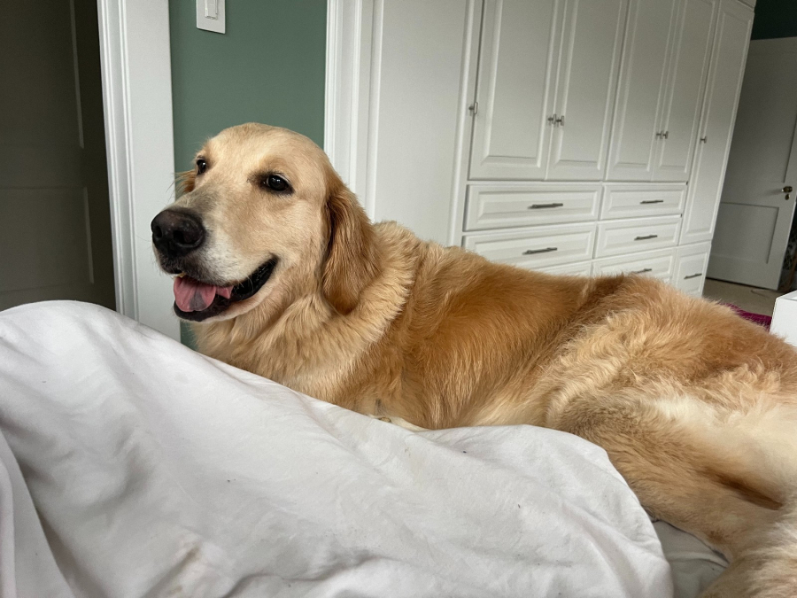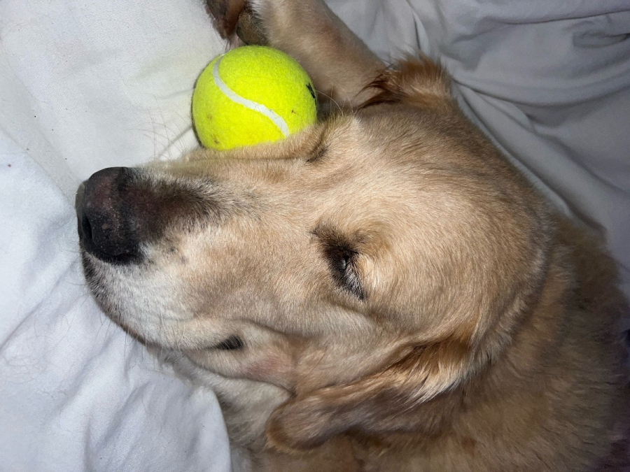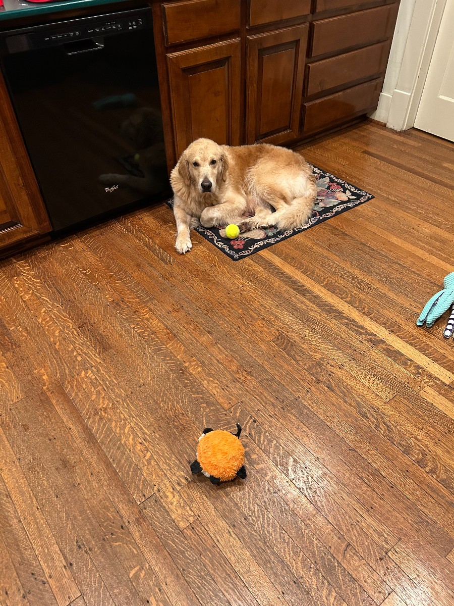 I'm currently interviewing families for my new forever home. I absolutely love people and I'm really friendly! I was named Sassy as a pup but I'm really well behaved now as a six-year-old gal (according to my foster parents). I don't bark much at all either. For a golden named Sassy, I'm really chill. I do have those nasty heart worms but I am being treated for those.I like to be with my foster parents wherever they are in the house when relaxing or working from home. I'm not a velcro dog like some goldens, but I love to be a few feet from my hoomans at all times. And I love visitors when they come over. After all, who comes to a house to see anyone but ME?I also love tennis balls and playing fetch. I've seen so many other goldens act like deceivers (not retrievers!) and I can assure you, I know the difference. You throw the ball, I chase after it and I will bring it right back to you and keep that up for as long as you are willing! I'm not much for playing with stuffed animals right now, but I have found four tennis balls around my foster home and rounded them all up on my comfy blanket for safekeeping.I enjoy walks and I want a family to adopt me that loves to take walks every day.So, if you think we'd be a good fit, fetch an application at GRRH.org or if you have an approved application contact your coordinator to see if we might match. Hope to see you soon!